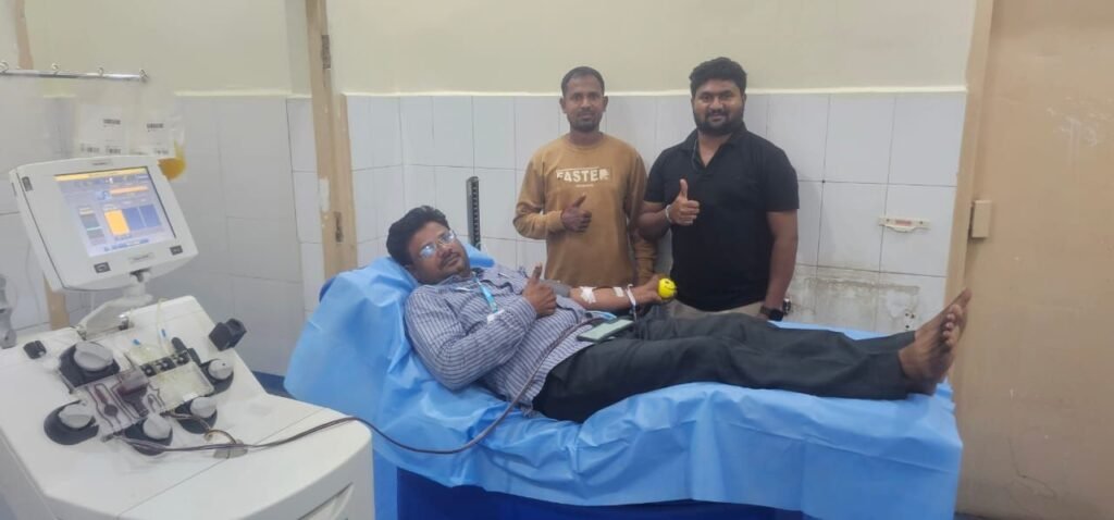 రక్తదానంతో ఆపదలో ఉన్న వారి ప్రాణాలను కాపాడాల్సిన బాధ్యత అందరిపై ఉందని నారాయణ కాలేజీ కెమిస్ట్రీ లెక్చరర్ కుంటిగొర్ల గణేష్ అన్నారు. స్థానిక వినాయక ఆస్పత్రిలో చికిత్స పొందుతున్న పన్నెండేళ్ల ఏళ్ల కావ్యశ్రీ కి ఏ పాజిటివ్ ప్లేట్లెట్స్ అవసరం కాగా… విధులను మధ్యలోనే వదిలేసి జ్యోతి హాస్పిటల్ కి వచ్చిన లెక్చరర్ గణేష్ ప్లేట్లెట్స్ అందించారు. ఈ సందర్భంగా ఆయన మాట్లాడారు. ఇప్పటికే 15 పర్యాయాలు రక్తదానం… ఐదుసార్లు ప్లేట్లెట్స్ ఇవ్వటం జరిగిందని చెప్పారు. రక్తదానం నిండు ప్రాణాలను కాపాడుతుందన్నారు.50 కేజీల బరువు ఉండి ఆరోగ్యంతో ఉన్నవారు రక్తదానం చేయవచ్చని చెప్పారు. యువత రక్తదానంపై అవగాహన పెంచుకొని… ఆపదలో ఆదుకోవాలని కోరారు. ఈ కార్యక్రమంలో మధు, అవిరెండ్ల సందీప్, పరంగి సైదులు, వరకాల సురేష్ తదితరులు ఉన్నారు.
